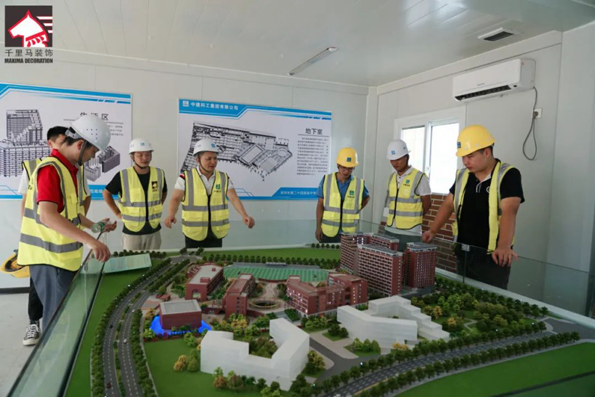 隨后一行人來(lái)到深圳市第二十四高級(jí)中學(xué)新建工程項(xiàng)目(一標(biāo)段:宿舍樓),項(xiàng)目位于深圳市寶安區(qū)沙井街道民主大道西側(cè)盡頭處北側(cè),建筑面積大約47000㎡;學(xué)生宿舍3F至13F共505間,教師宿舍3F至15F共228間及配套所有公共區(qū)域(宿舍樓2F以上和對(duì)應(yīng)的外墻)實(shí)際工期為2021年9月15日2022年1月20日(共127天),工作面大,施工時(shí)間少,所以要求項(xiàng)目需要穿插施工、交叉施工。李董表示,項(xiàng)目要極速搶工施工,水平與垂直立體分段,幕墻、機(jī)電、精裝穿插施工,精裝報(bào)驗(yàn)、精裝竣備,按期交付驗(yàn)收。