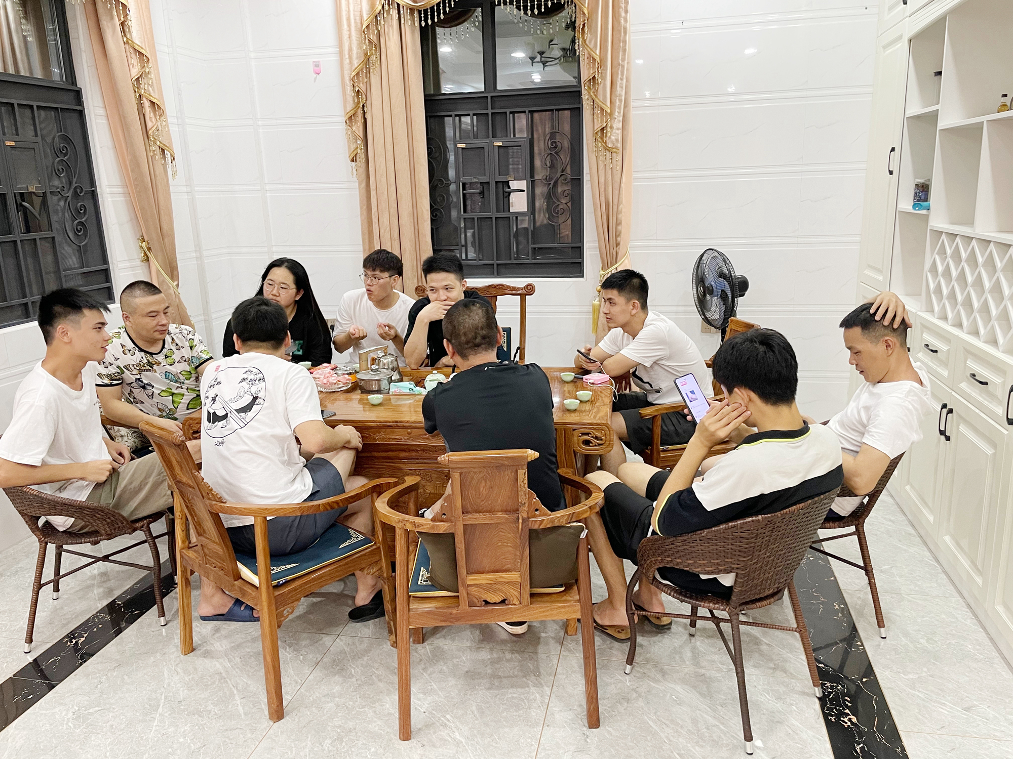我們擁有一個(gè)大大的別墅房子。那里有懸空吊頂?shù)乃簟⒊领o古樸的茶桌,還有盡情搖擺的KTV和尚未踏足的棋牌室。燈光流動,大家敞開心扉,或深情吟唱,或靜靜聆聽,或吃茶談心聊工作,因?yàn)橐磺卸加校砸磺卸伎桑?/span>