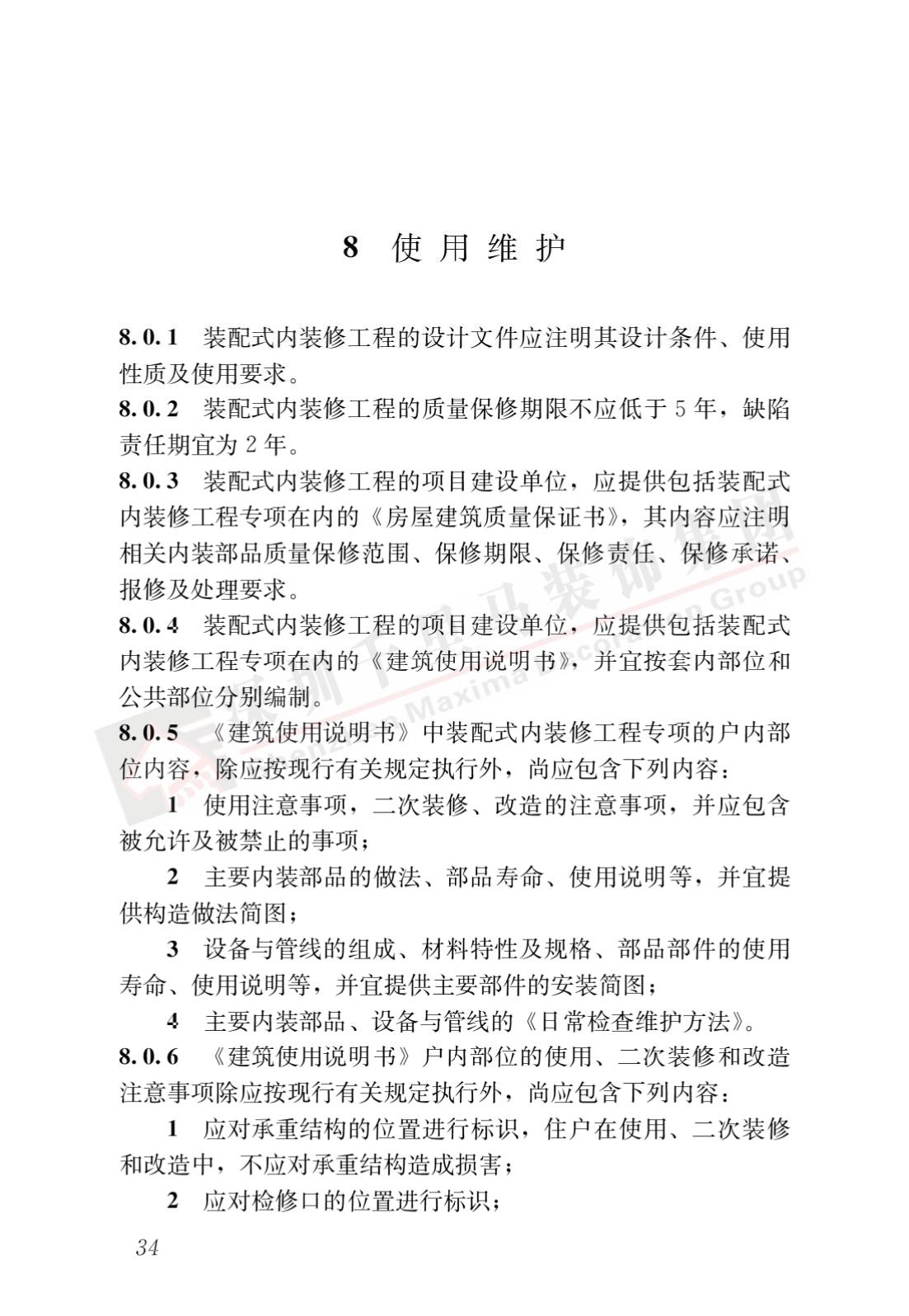 標(biāo)準(zhǔn)適用于新建建筑裝配式內(nèi)裝修的設(shè)計(jì)、生產(chǎn)運(yùn)輸、施工安裝、質(zhì)量驗(yàn)收及使用維護(hù),主要技術(shù)內(nèi)容包括總則、術(shù)語、基本規(guī)定、設(shè)計(jì)、生產(chǎn)運(yùn)輸、施工安裝、質(zhì)量驗(yàn)收、使用維護(hù)。